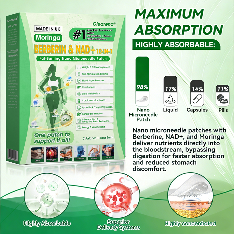 ๐๐ฅ๐๐๐ซ๐๐ง๐ยฎ Moringaยท Berberine x NAD+ 10-in-1 Advanced Nano Microneedle Patch: 98% Absorption Rate, Transforming Weight, Liver, Gut & Skin Health